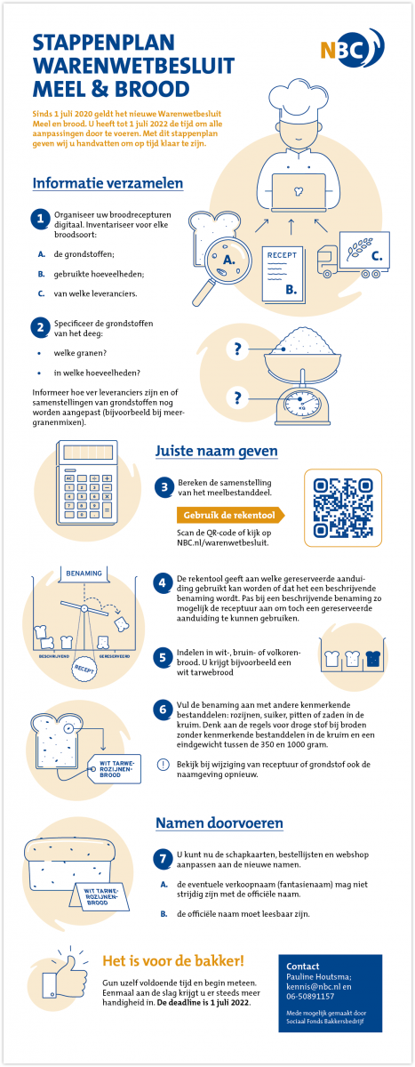 Dit dossier biedt een overzicht van alle regels en acties voor de bakker met betrekking tot het Warenwetbesluit Meel en brood. Ook alle praktische hulpmiddelen die NBC ontwikkelt voor u als bakker, staan op deze pagina bijeen.